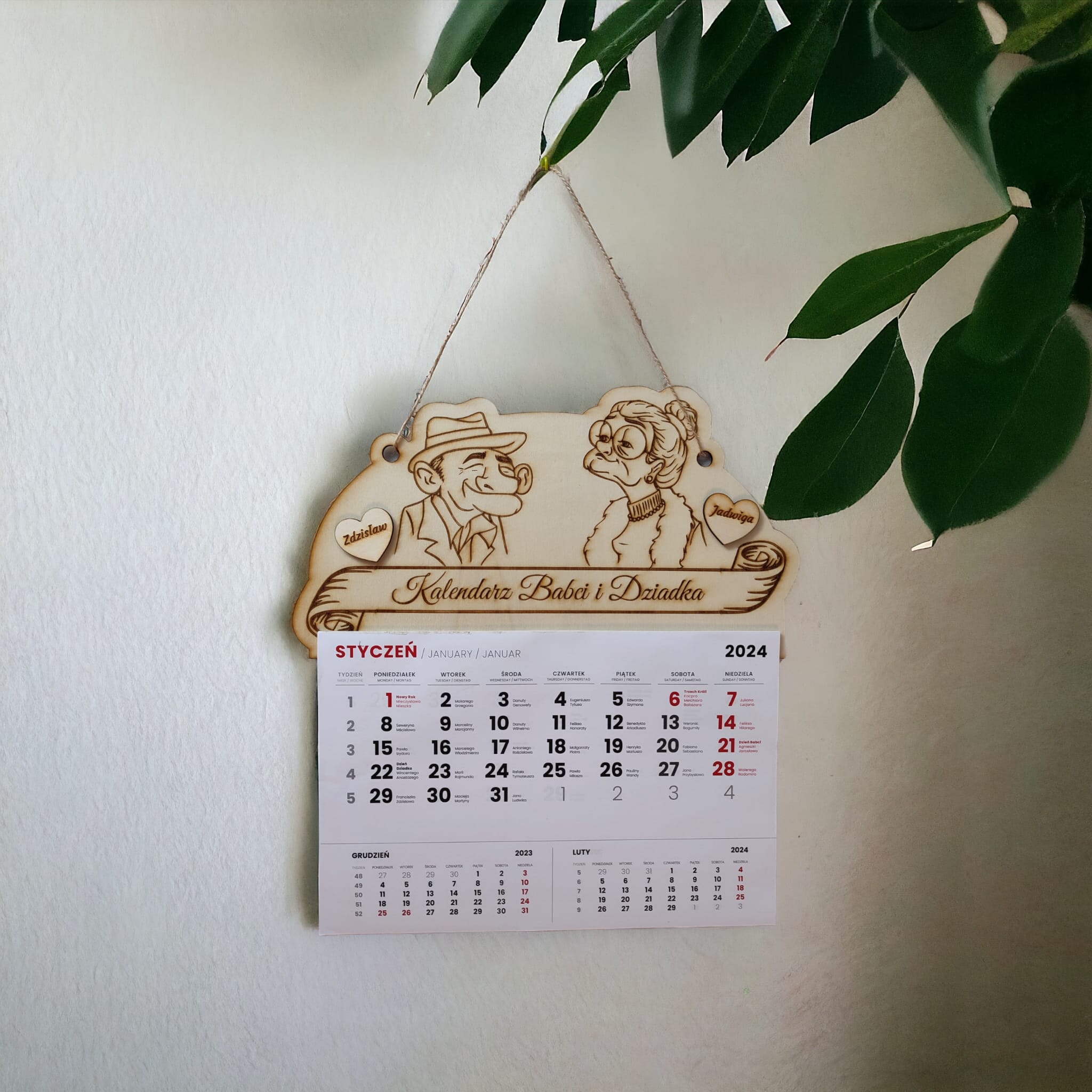 Kalendarz dla Babci i Dziadka ze sklejki z imionami