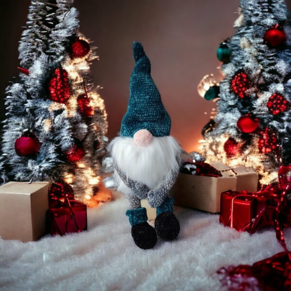 Broda z futerka białego z długim włosem: Skrzat ma uroczą białą brodę wykonaną z futerka o długim włosiu, co nadaje mu niezwykły urok i wyjątkowy wygląd.