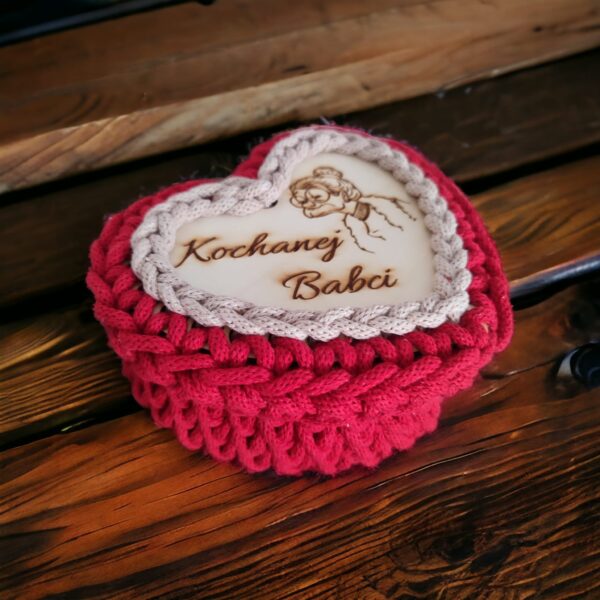 Szkatułka kuferek w kształcie serca to wyjątkowy i personalizowany prezent dedykowany dla Babci. Jest wykonana z trwałej sklejki, co nadaje jej solidnej struktury, a jednocześnie dodaje naturalnego uroku. Całość została starannie wykończona sznurkiem, dodającymi elegancji oraz przyjemnej w dotyku fakturze.